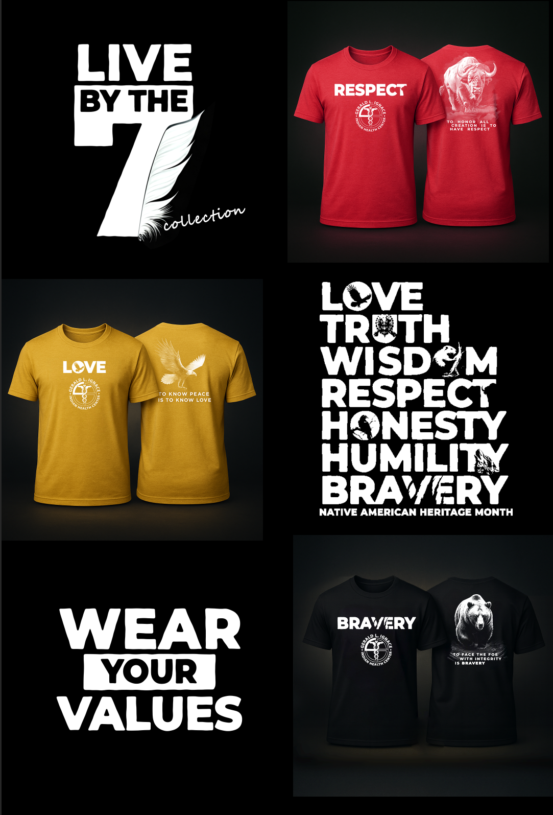 In honor of Native American Heritage Month, we’re offering Seven Teachings T-shirts for sale, celebrating these guiding principles that continue to shape our collective wellness and identity.